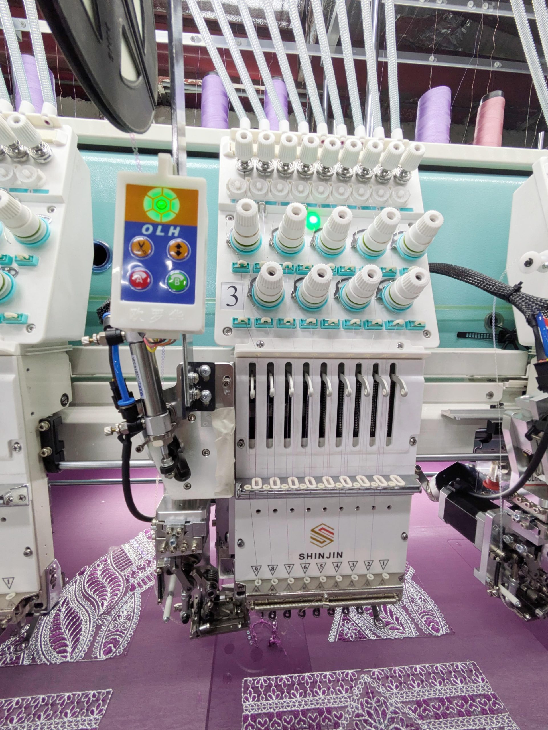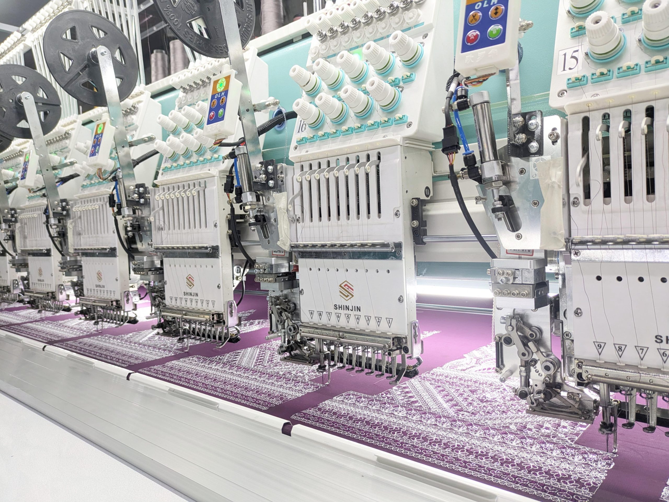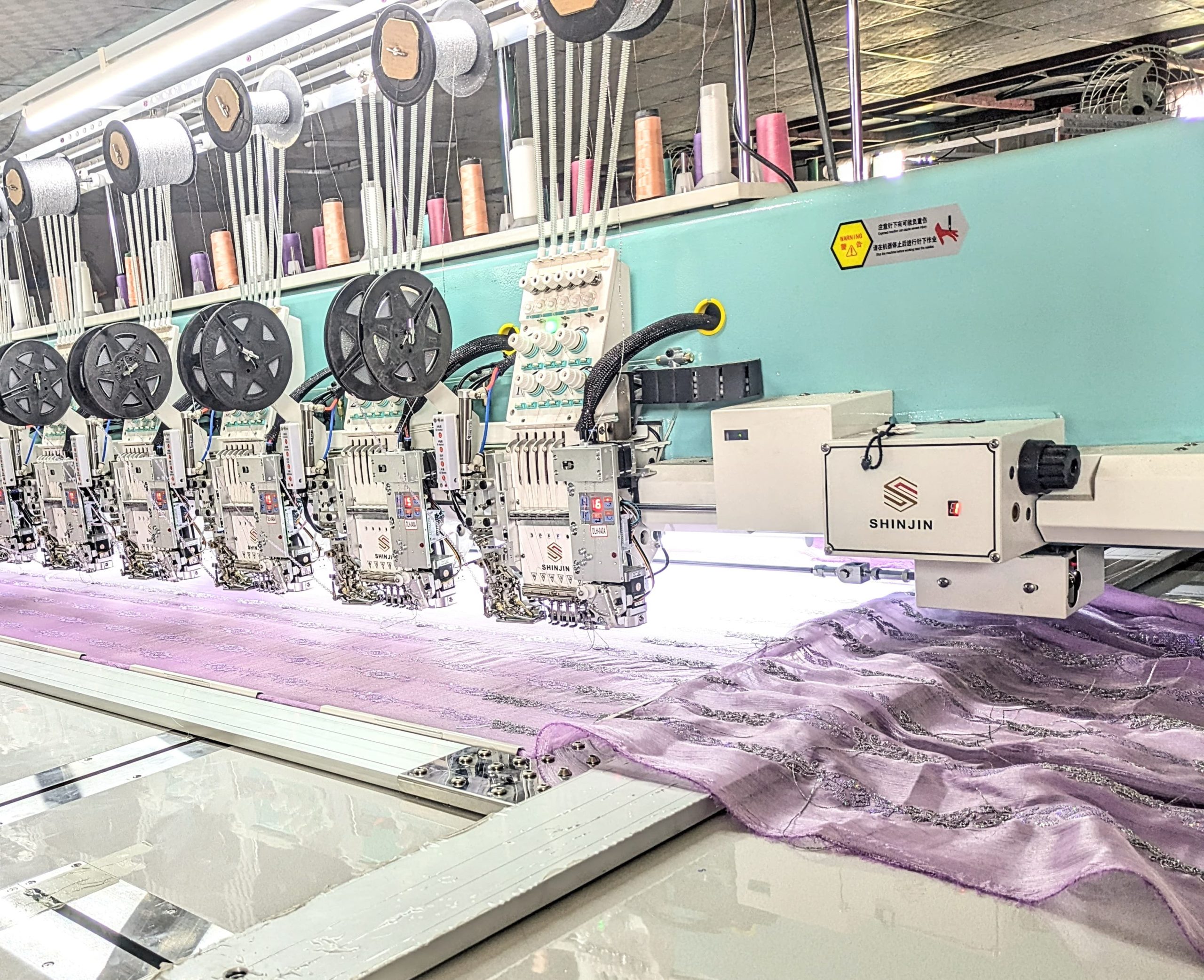 SHINJIN high speed embroidery machine is developed on the base of advanced controlling system, reliable machine body structure and reasonable reciprocator system. It can run with high speed and low noise. The normal running speed of it is 1200-1500RPM and the maximum speed is 1500RPM. It has perfectly realized the combination of quality and speed.