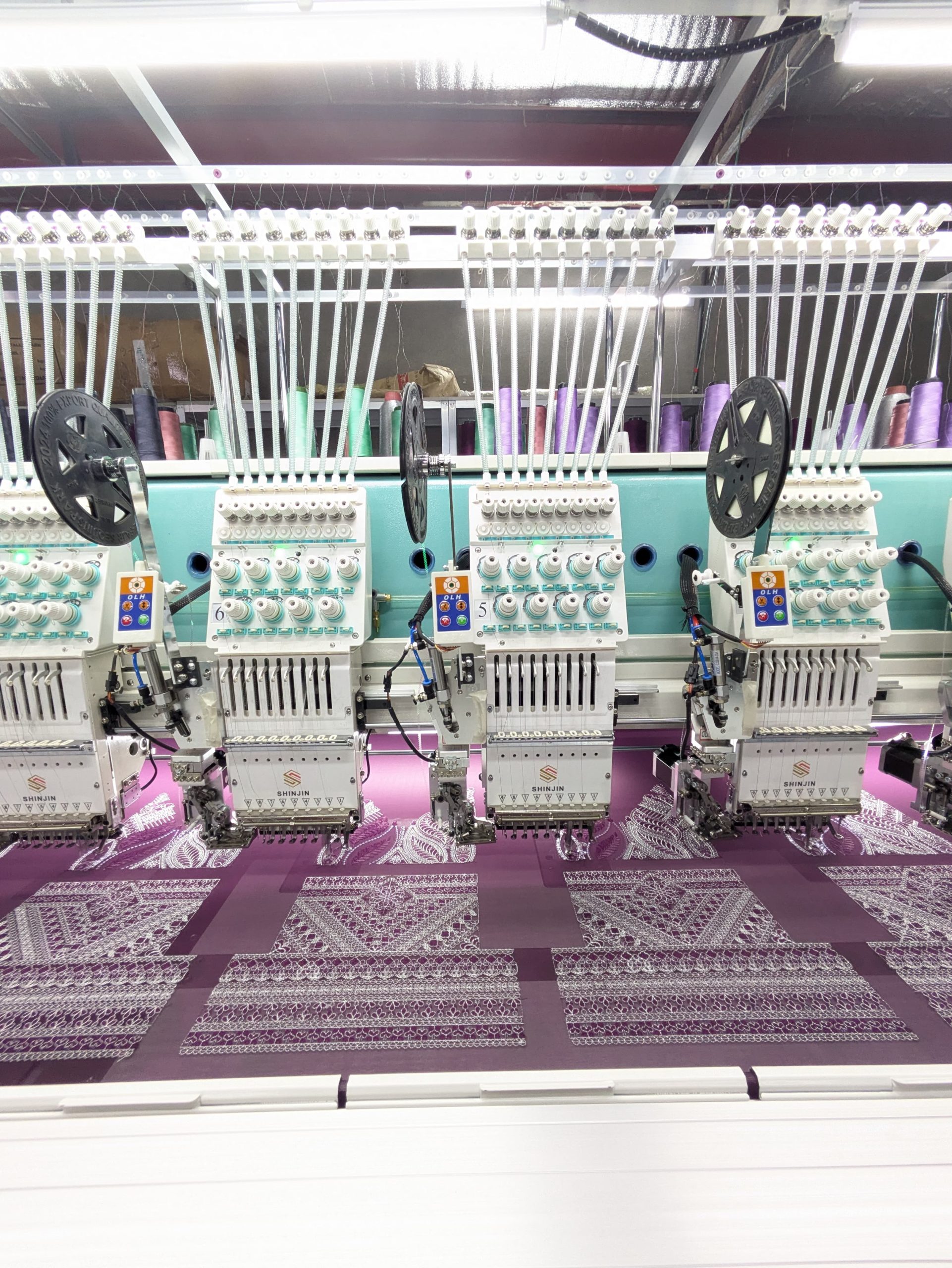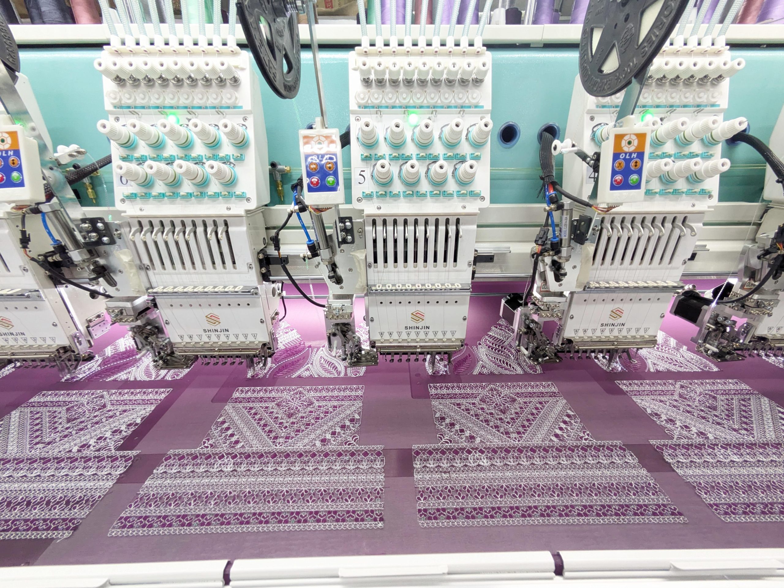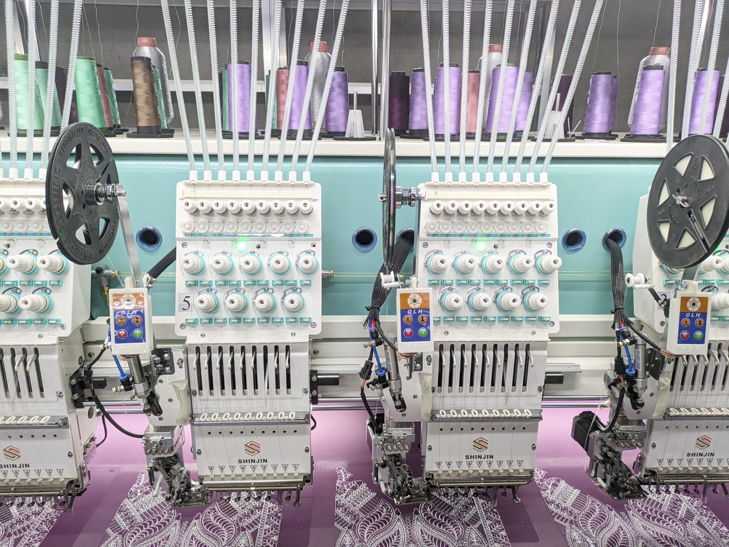 SHINJIN high speed embroidery machine is developed on the base of advanced controlling system, reliable machine body structure and reasonable reciprocator system. It can run with high speed and low noise. The normal running speed of it is 1200-1500RPM and the maximum speed is 1500RPM. It has perfectly realized the combination of quality and speed.